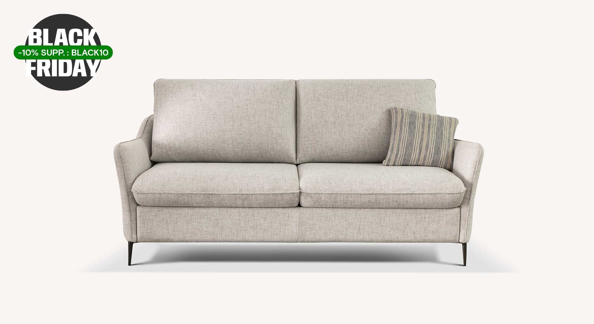 You will appreciate the exceptional comfort of the daily mattress offered by your sofa. The bed of the BOGART sofa bed is based on a real box spring with large beech wood slats for excellent nighttime comfort and a quality and welcome that has nothing to envy of a real bed! Its comfortable seat during the day and its welcoming bed at night make this model a cozy and functional sofa bed.