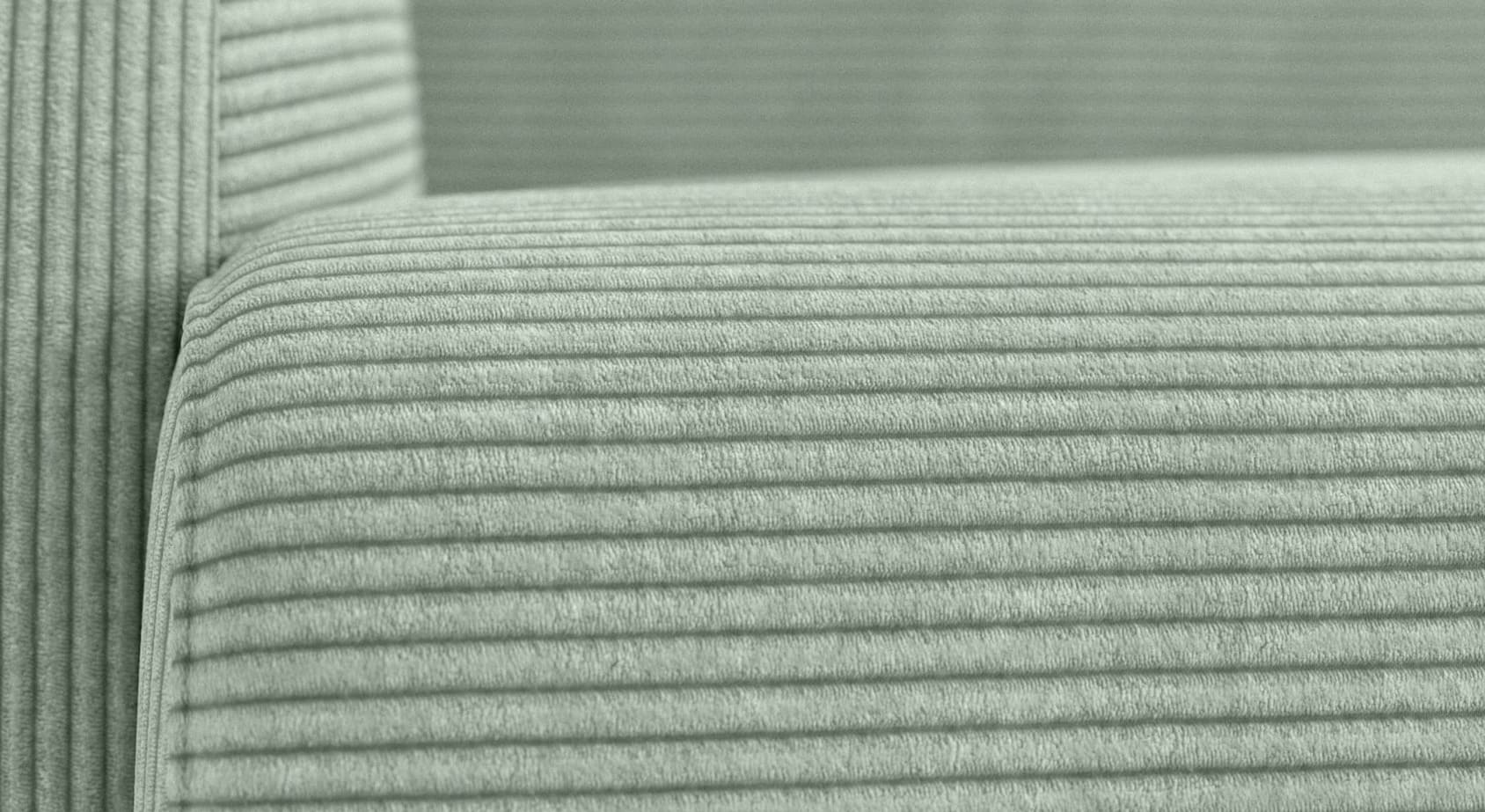 When opened, the CLINT corduroy sofa bed measures approximately 185 cm long, 210 cm deep and 87 cm high. Its compact size is ideal for small spaces.