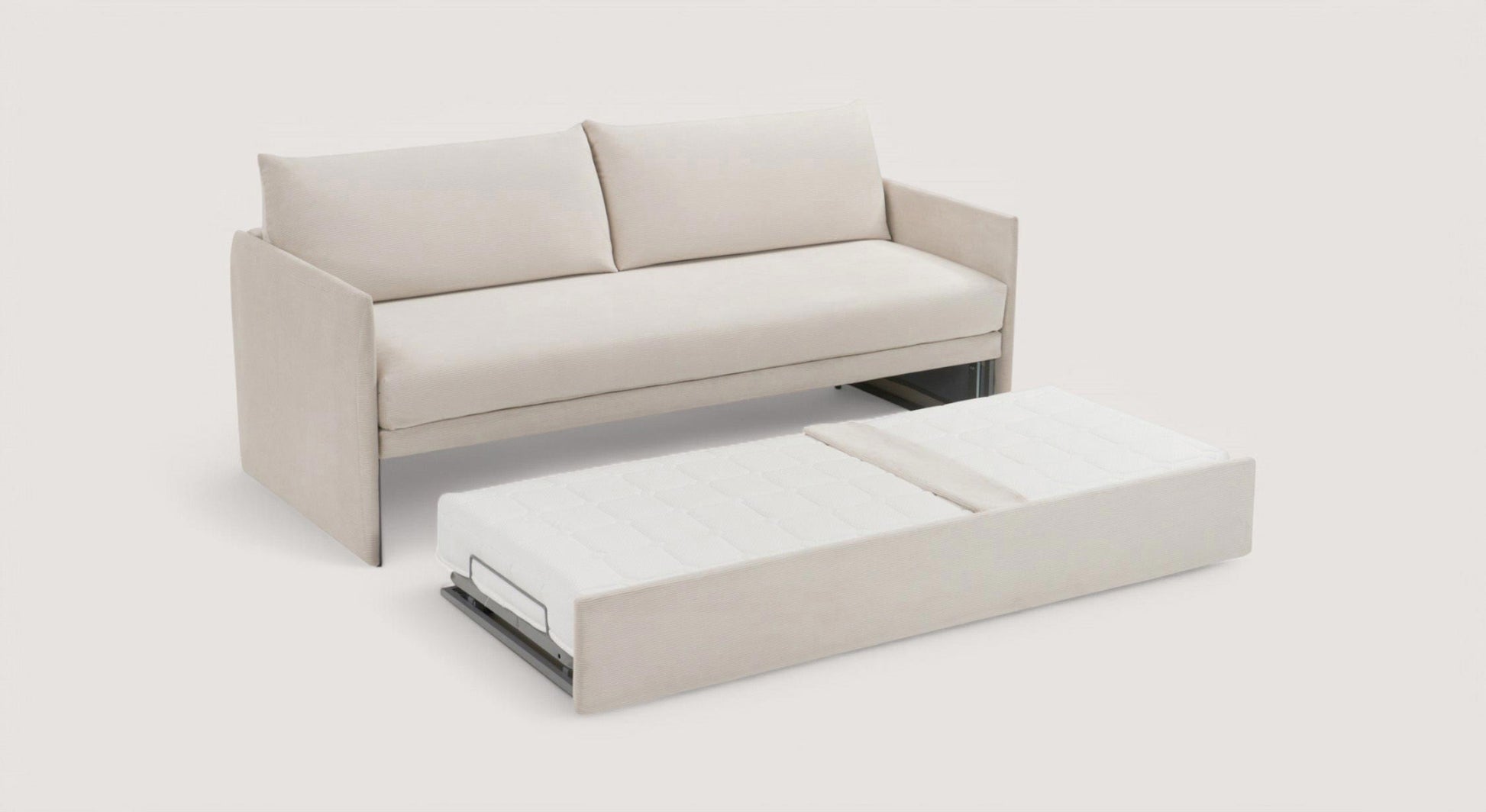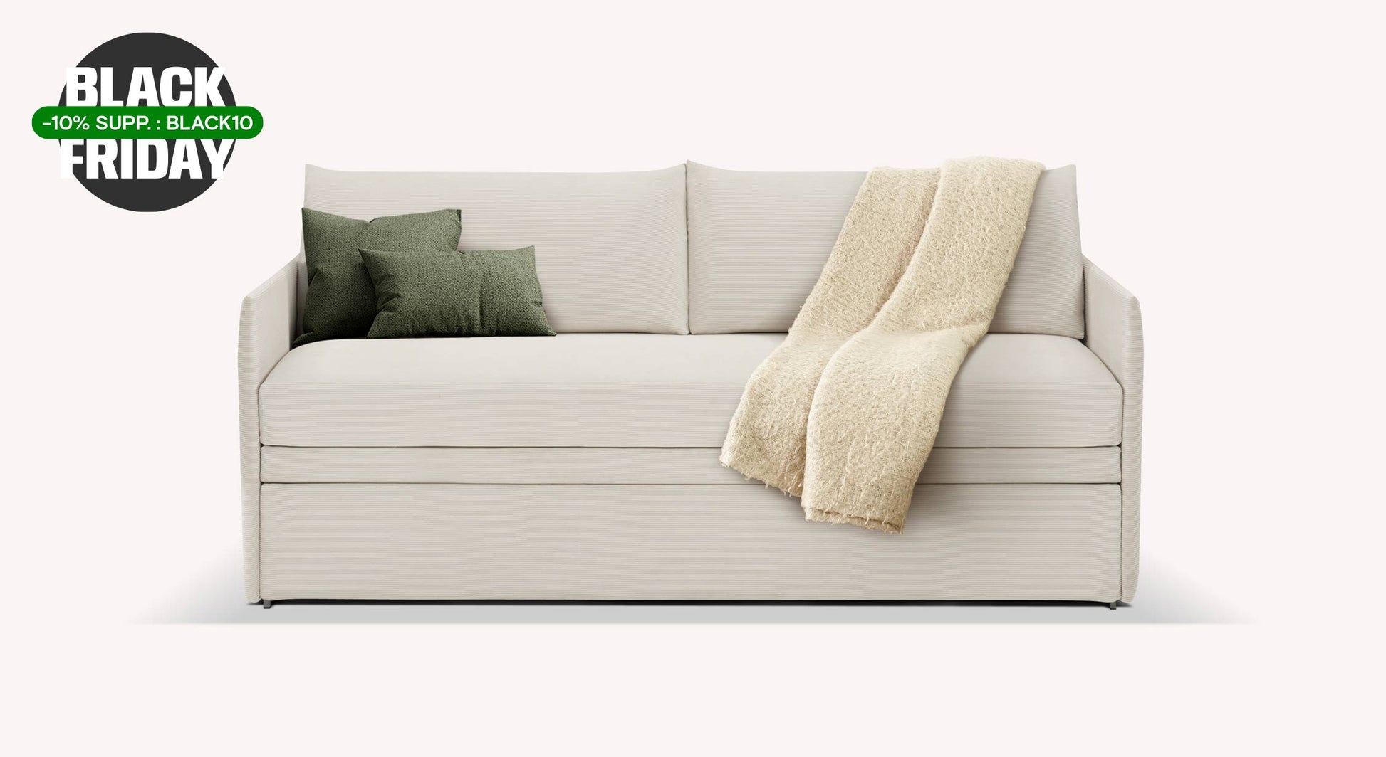 Enjoy a 2-in-1 piece of furniture with the GAIA pull-out sofa bed, known for its seating comfort and its discreet and practical additional sleeping area to accommodate your loved ones with ease. In addition, it adapts properly to your living space thanks to its ingenious design.