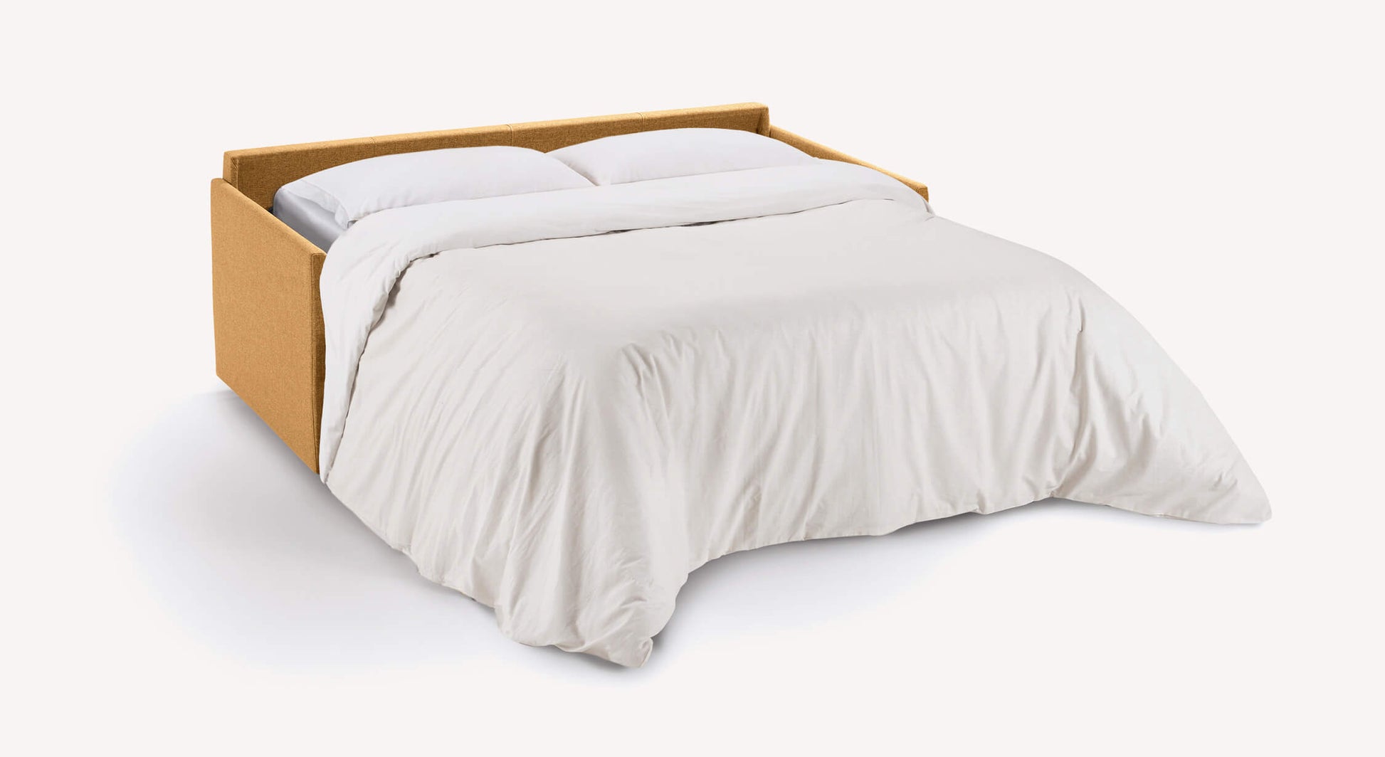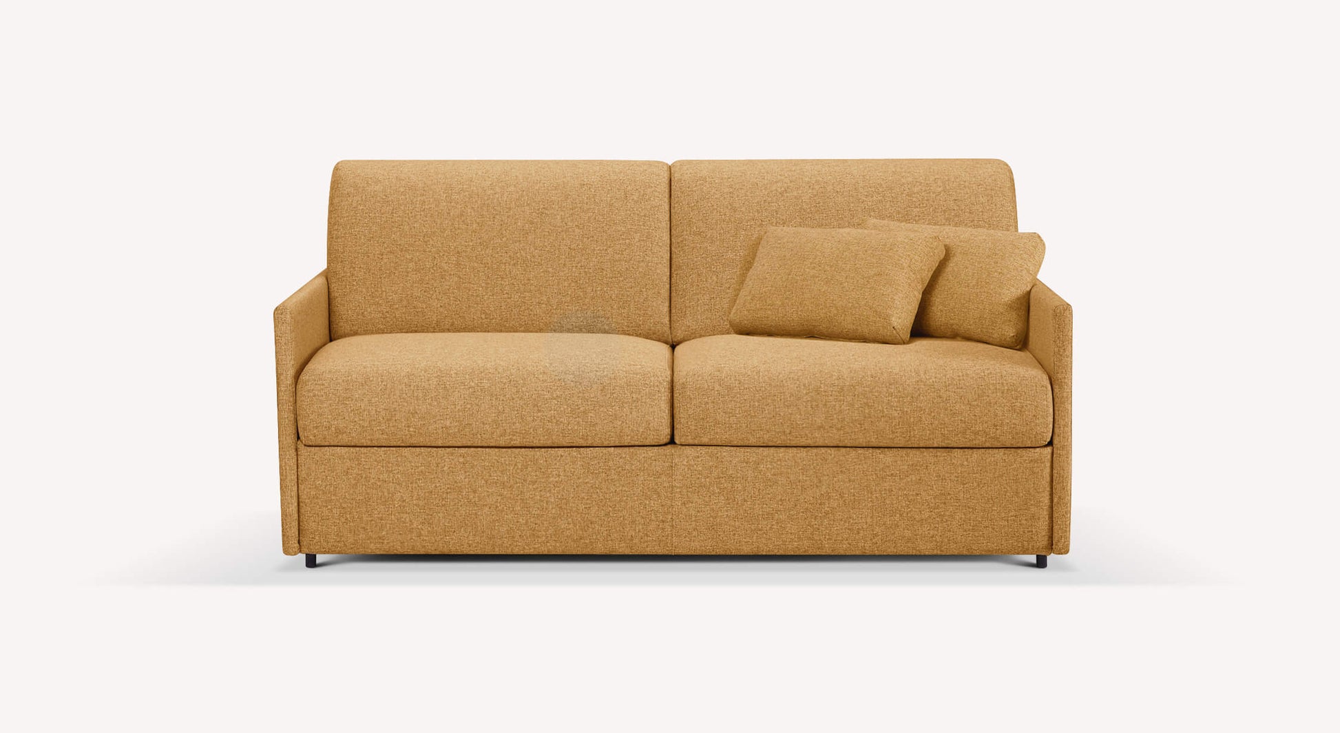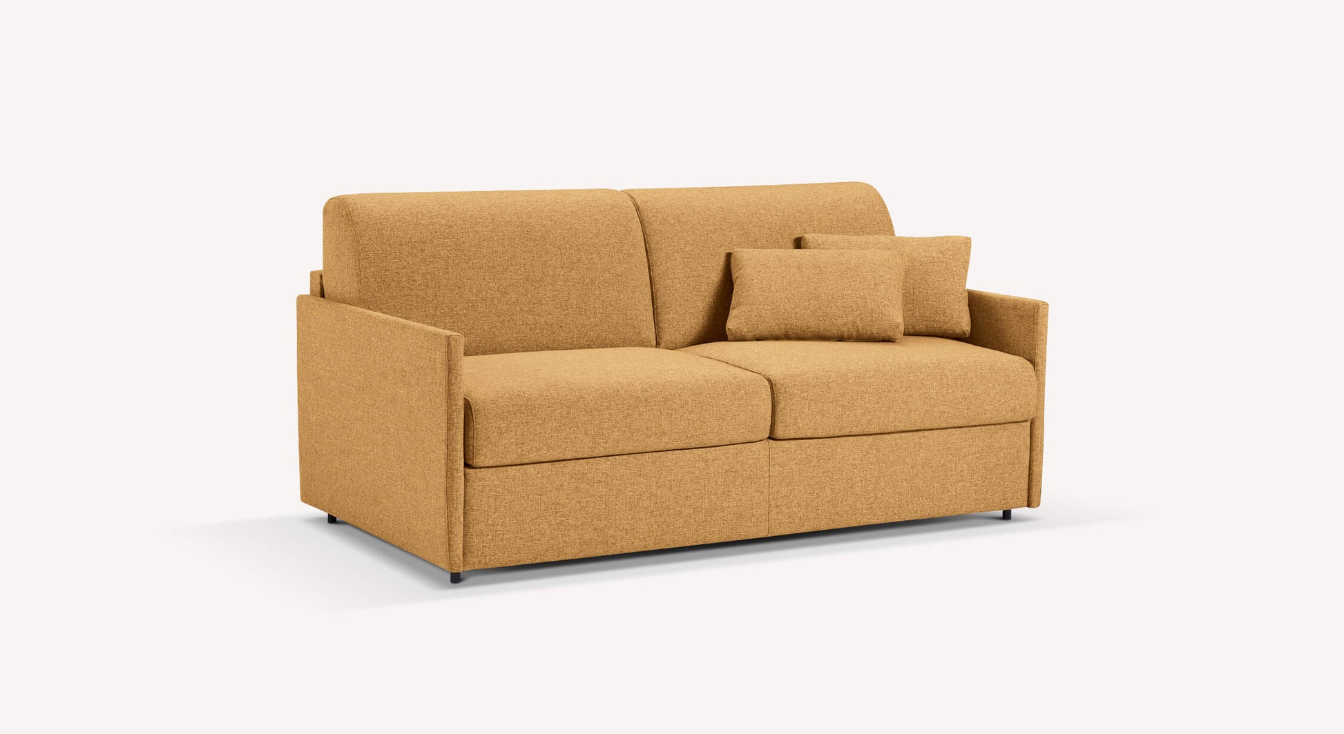 Lorsque le canapé Jerry Compact est entièrement déplié, en format 140, il mesure 170 cm de longueur, 205 cm de profondeur et 88 cm de hauteur. Grâce à ses accoudoirs fins, il maximise l’espace assise et couchage tout en conservant un format ultra compact, parfait pour les petits salons ou les studios.