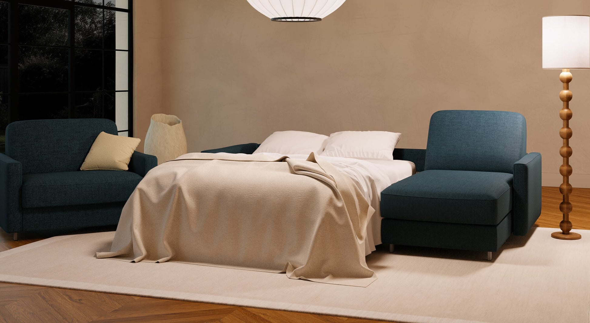 With a very sober design, the contemporary style JIMMY Angle rapido sofa bed brings a cozy touch to your interior, while giving you the benefit of a major advantage: its dimensions!