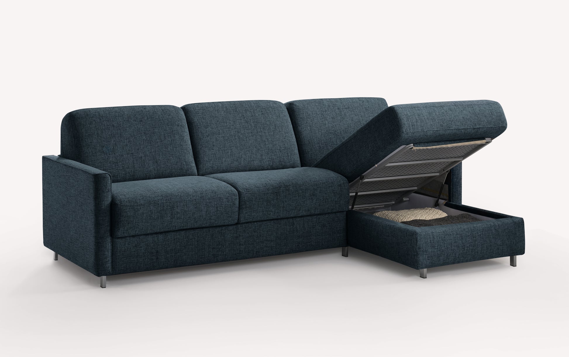 As comfortable as it is practical, the JIMMY Corner sofa bed with its sober design can be appreciated both during the day for its ultra-comfortable seating and at night with its 17cm mattress, which makes it a corner sofa of choice.