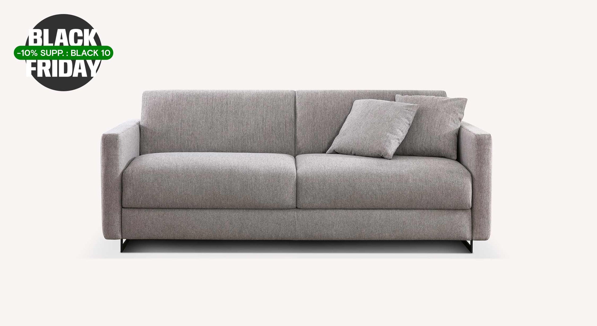 Le modèle JUSTIN est un canapé convertible rapido en tissu aux lignes droites. Son aspect contemporain est mis en valeur par un discret piètement en métal. L'assise et le dossier de ce canapé convertible sont généreux et viennent contraster avec la finesse des accoudoirs droits. Le design de ce canapé convertible est entièrement personnalisable : il existe plus de 500 choix de coloris et de revêtements disponibles dans notre stock. De la matière ( microfibre, tissu, simili cuir, velours, etc.) à la couleur (beige, noir, marron, blanc, bleu canard, vert foncé, anthracite, etc.), vous customisez entièrement votre canapé convertible JUSTIN.