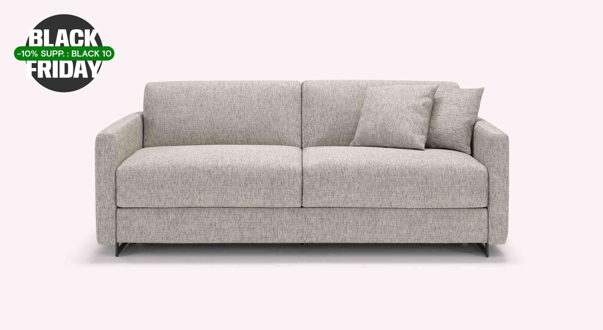 Le modèle JUSTIN est un canapé convertible rapido en tissu aux lignes droites. Son aspect contemporain est mis en valeur par un discret piètement en métal. L'assise et le dossier de ce canapé convertible sont généreux et viennent contraster avec la finesse des accoudoirs droits. Le design de ce canapé convertible est entièrement personnalisable : il existe plus de 500 choix de coloris et de revêtements disponibles dans notre stock. De la matière ( microfibre, tissu, simili cuir, velours, etc.) à la couleur (beige, noir, marron, blanc, bleu canard, vert foncé, anthracite, etc.), vous customisez entièrement votre canapé convertible JUSTIN.