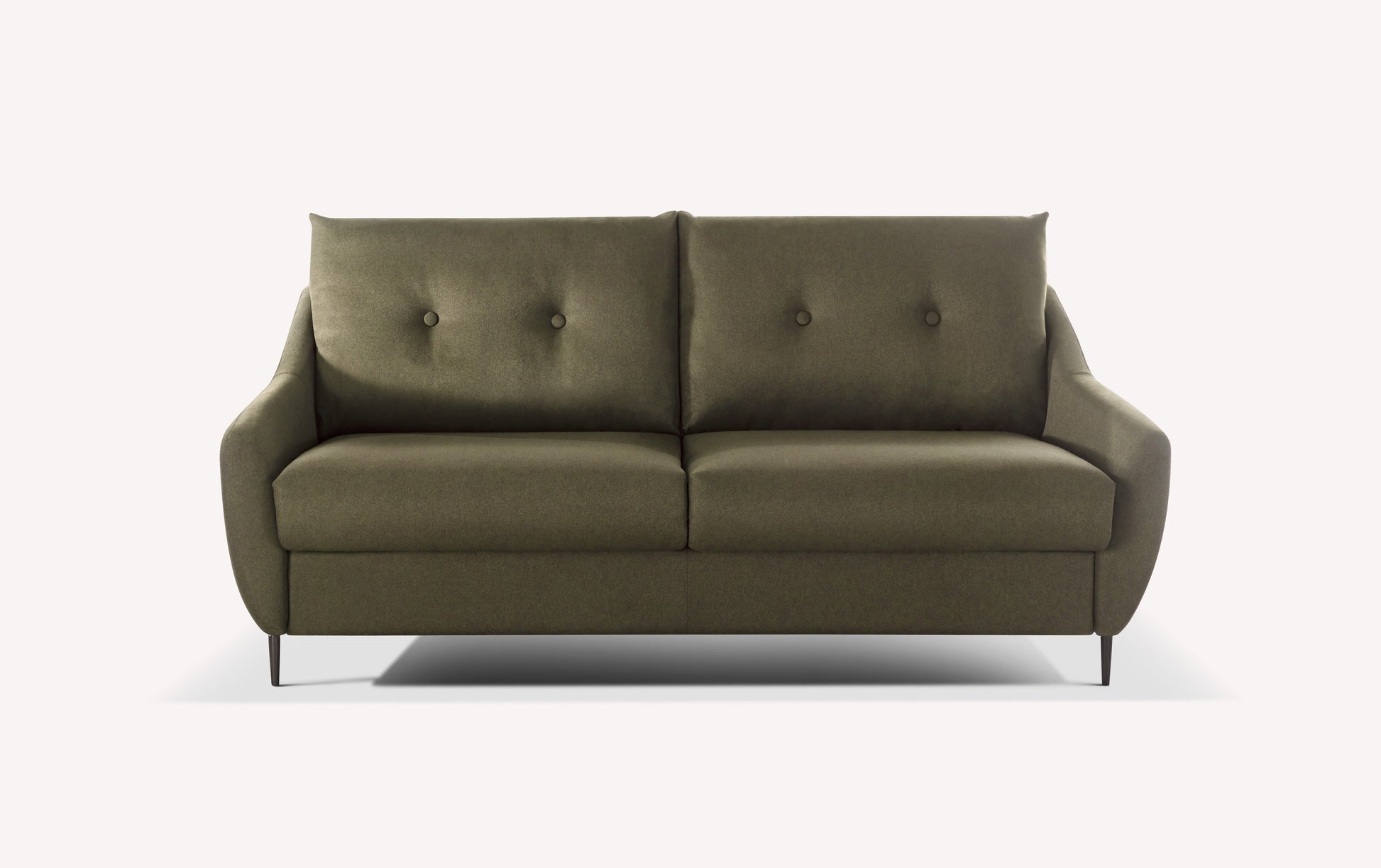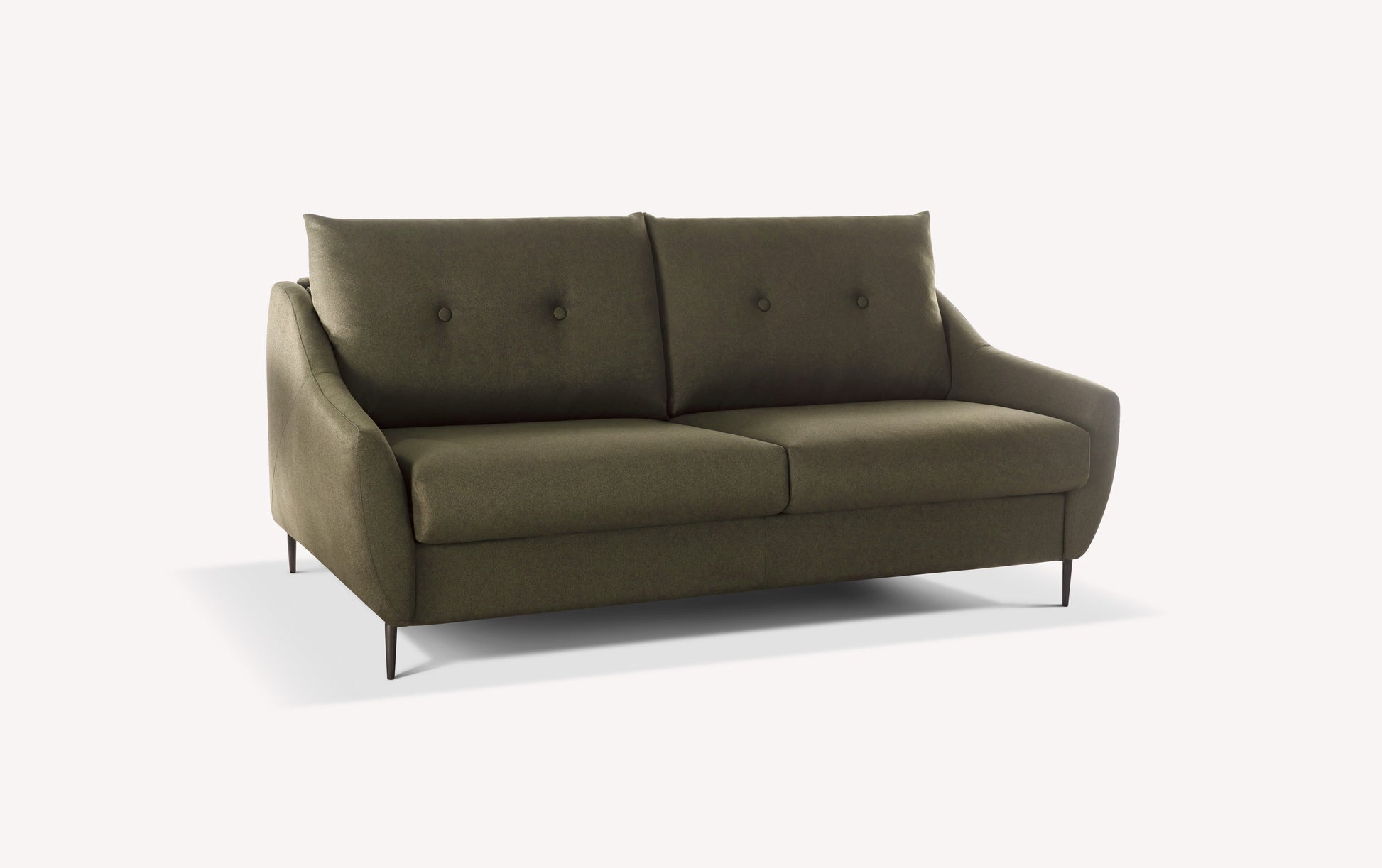 Here is the LAYNE rapido convertible sofa! This superb sofa with delicate finishes will enhance any interior. Mounted on its metal needle legs, with flared armrests and a padded back, its cocooning but distinguished look will bring a trendy touch to a living room.