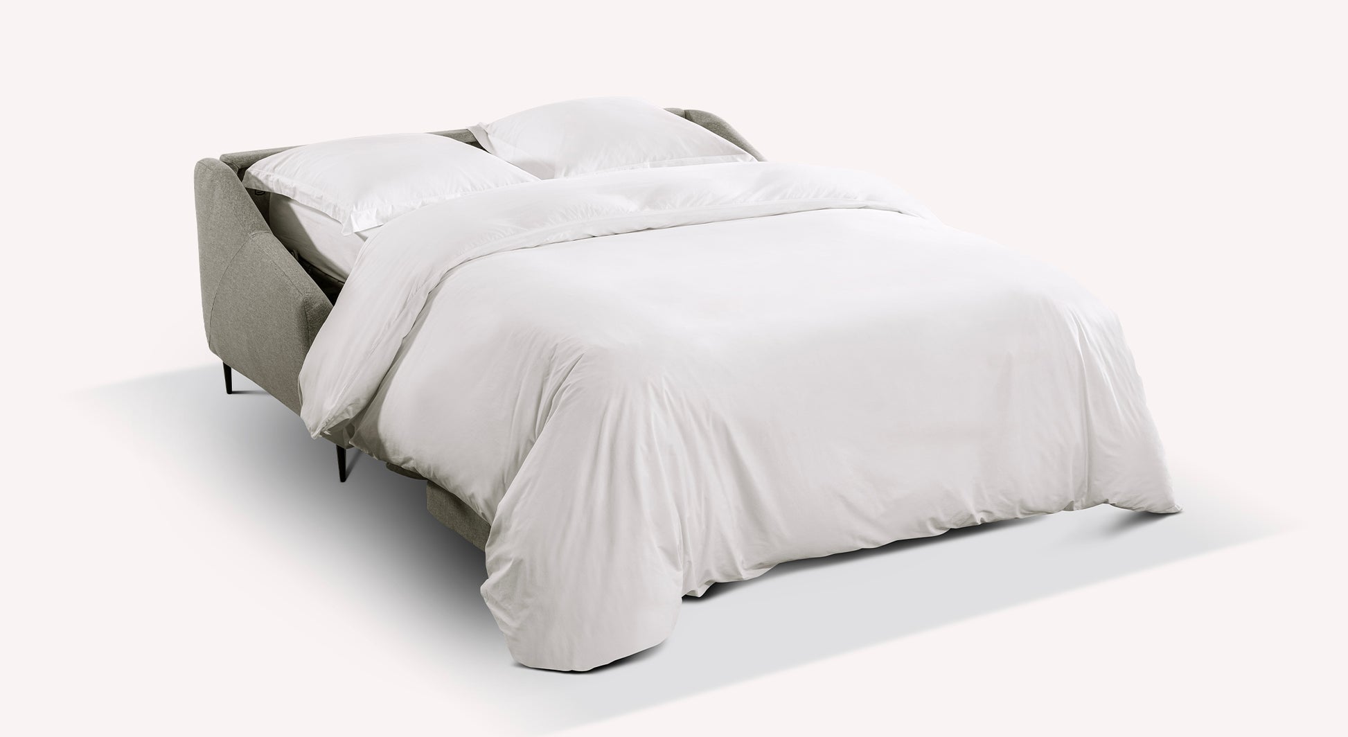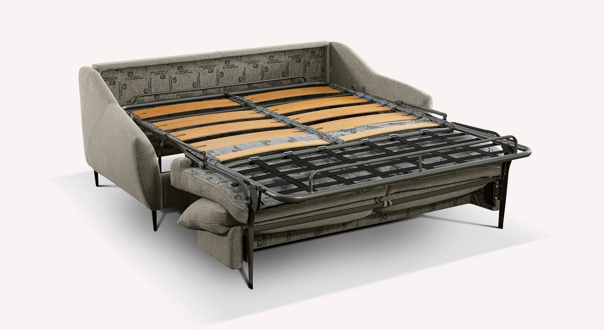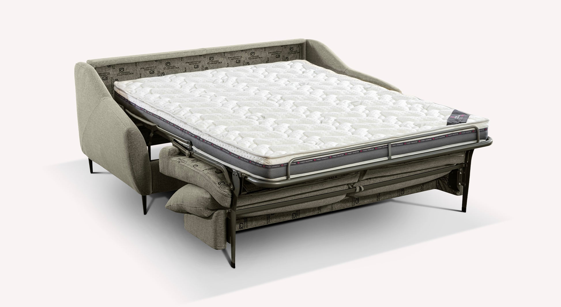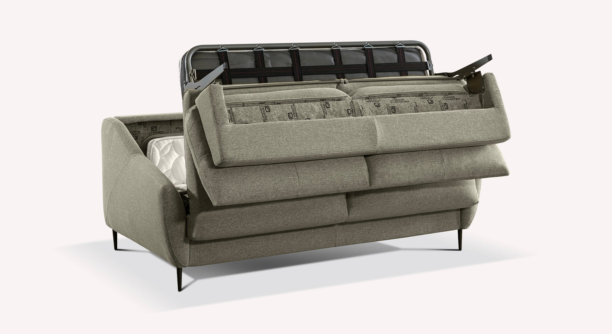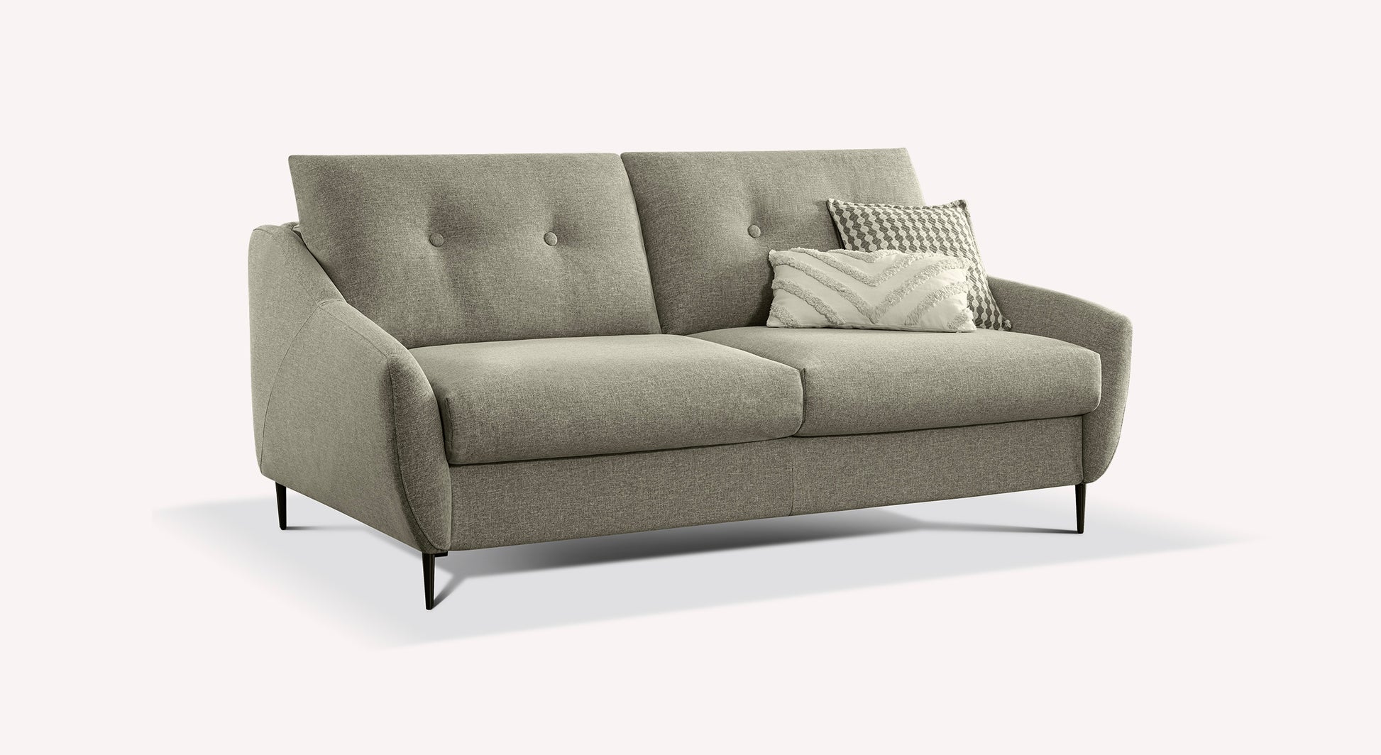 Here is the LAYNE rapido convertible sofa! This superb sofa with delicate finishes will enhance any interior. Mounted on its metal needle legs, with flared armrests and a padded back, its cocooning but distinguished look will bring a trendy touch to a living room.