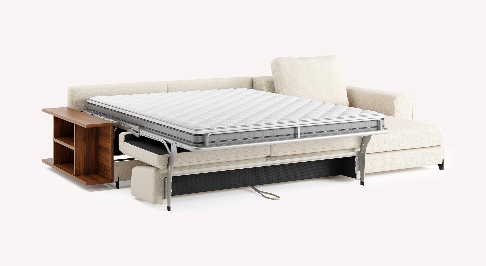 In a few seconds, thanks to the rapido system, it transforms into a real bed composed of a 13 cm thick mattress and a slatted or grid base depending on your preferences. Able to serve as both a comfortable sofa and a bed, it is the ideal multi-use sofa. Our in-store advisors will be delighted to present to you all the possible configurations as well as all the mattresses that best suit your comfort.