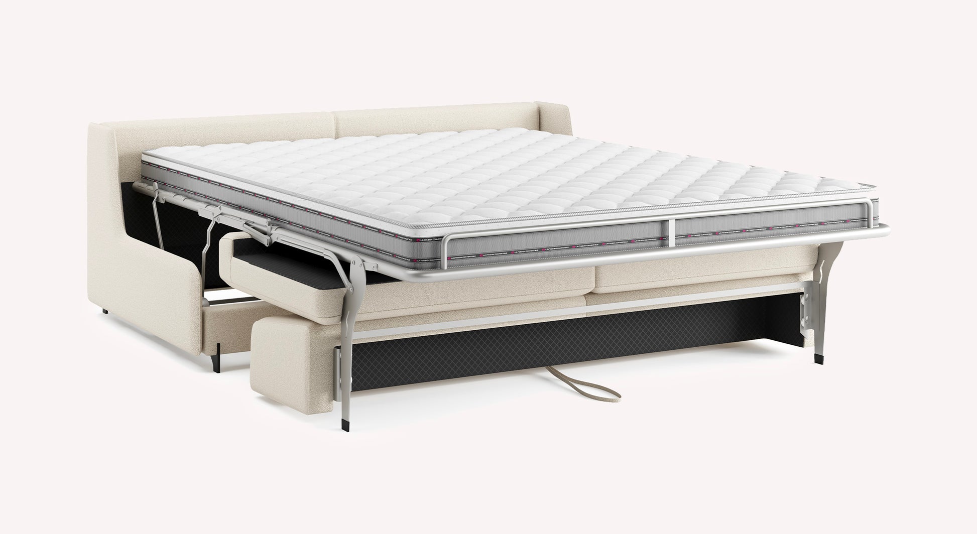 In a few seconds, thanks to the rapido system, it transforms into a real bed composed of a 13 cm thick mattress and a slatted or grid base depending on your preferences. Able to serve as both a comfortable sofa and a bed, it is the ideal multi-use sofa. Our in-store advisors will be delighted to present to you all the possible configurations as well as all the mattresses that will best suit your comfort.
