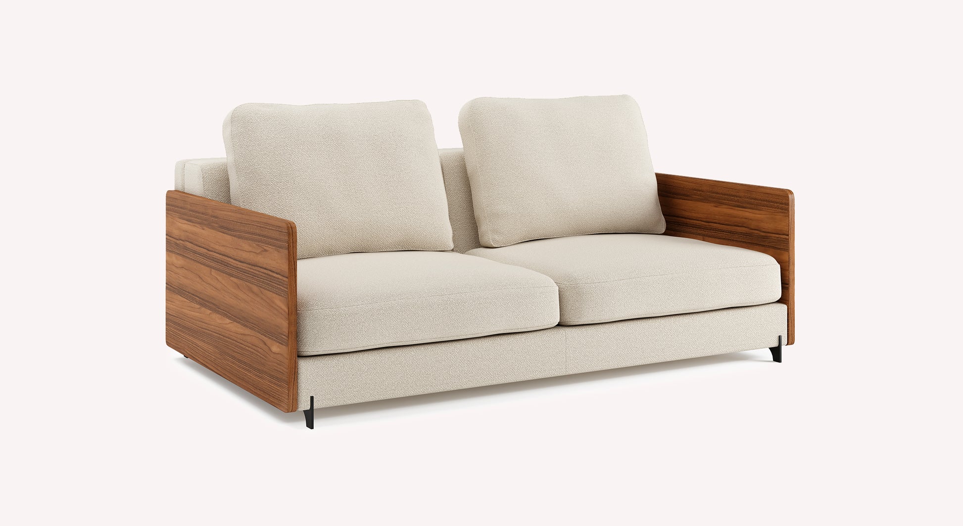 The NELLY is the first sofa that is both convertible and modular. Opt for the Nelly Compact: its minimalist silhouette and ultra-thin wooden armrests allow it to be integrated into any room, even the smallest. To compose and modulate endlessly!