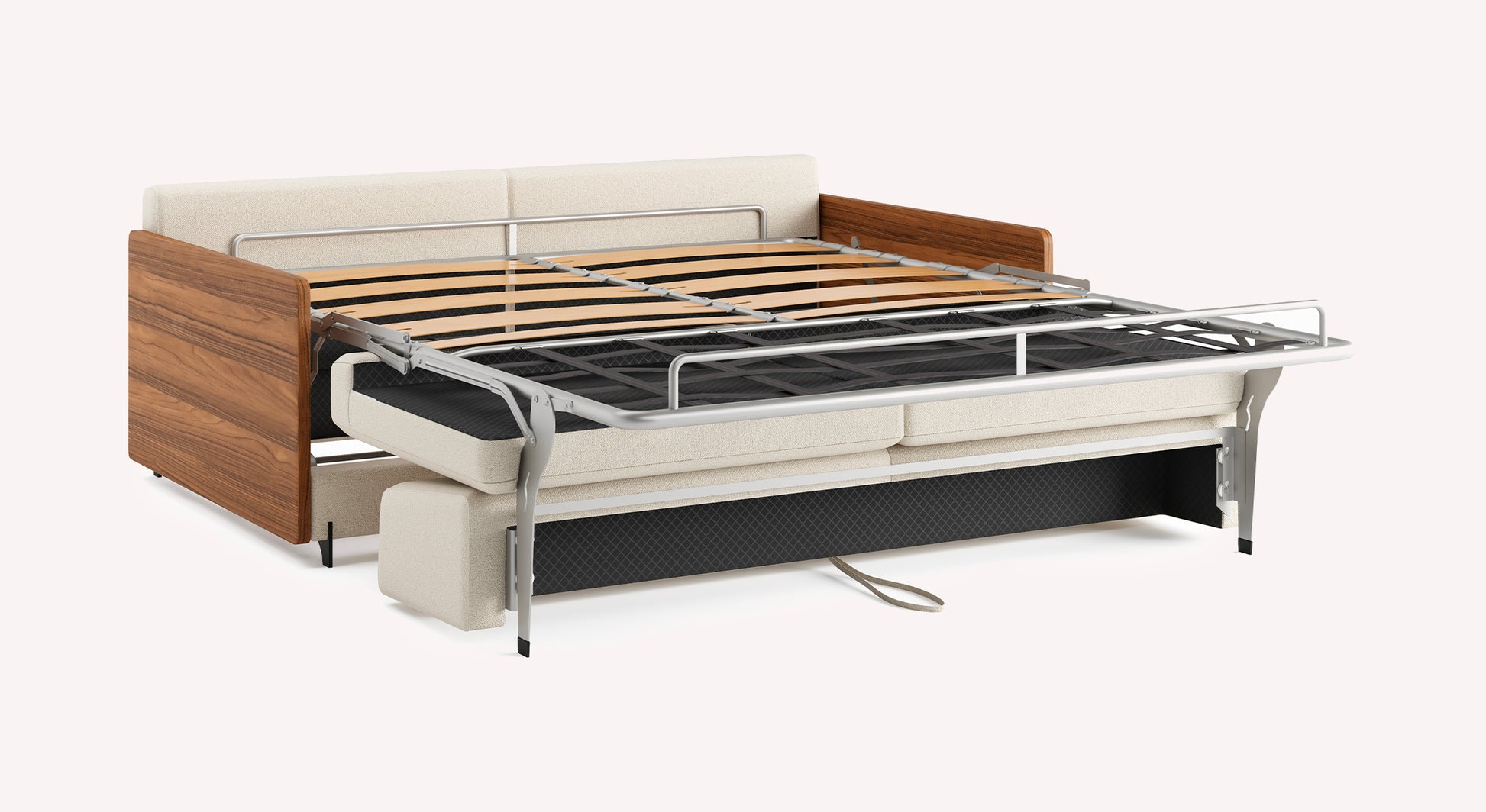 In a few seconds, thanks to the rapido system, it transforms into a real bed composed of a 13 cm thick mattress and a slatted or grid base depending on your preferences. Able to serve as both a comfortable sofa and a bed, it is the ideal multi-use sofa. Our in-store advisors will be delighted to present to you all the possible configurations as well as all the mattresses that will best suit your comfort.