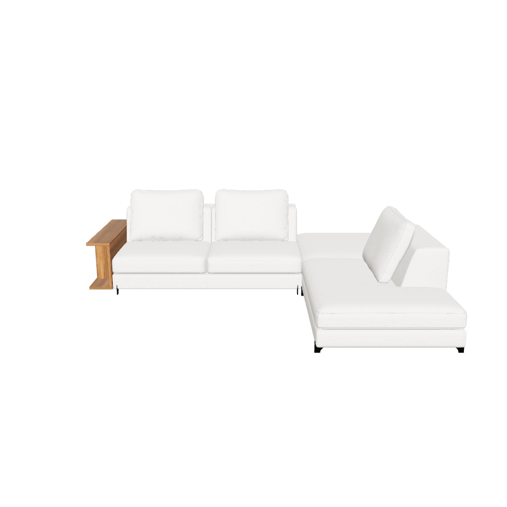 With its refined and exquisite design, the NELLY Angle with Modular Pouf and Chaise longue brings a touch of modernity to your interior. Equipped with a semi-firm and very comfortable seat, it has a removable cover, which makes it easier to maintain. Its bookcase armrest, here in walnut, also exists in light oak, gree melamine and black melamine versions.