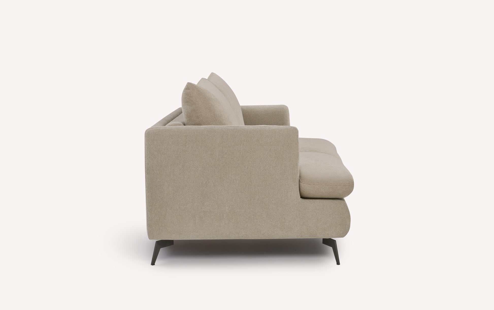Treat yourself to a touch of prestige and elegance. This sofa envelops you comfortably in its backrest reminiscent of two pillows. Like a queen, the QUEEN stands out for its singular style: between its 12cm metal legs and its imposing armrests, the QUEEN defies all conventional expectations for a convertible!