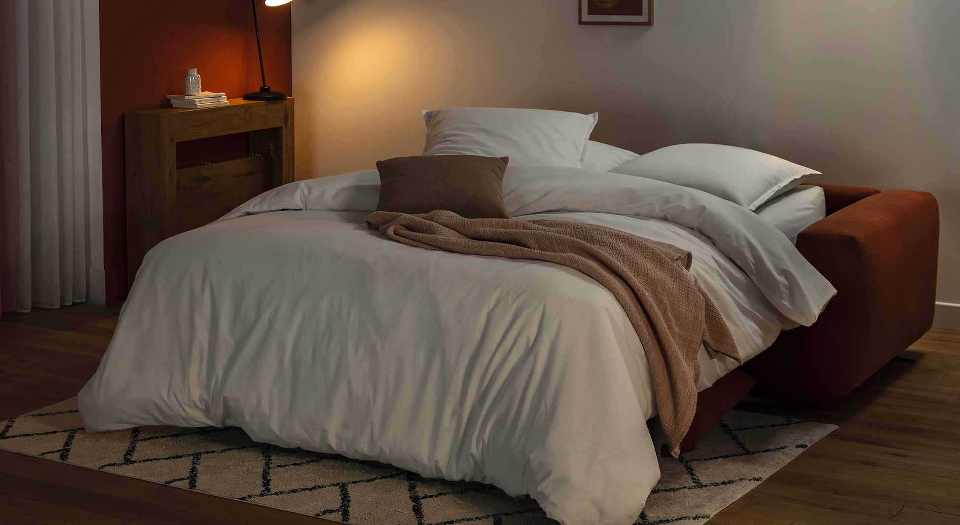 Une fois la mécanique dépliée, profitez du canapé-lit Stella, qui fera 205cm de large et 216cm de profondeur.