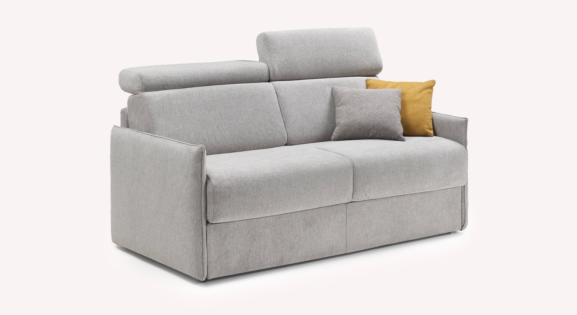 Let yourself be seduced by the TANIA convertible sofa with adjustable headrest, a relaxing model combining modernity and comfort. Practical and clever, it will be perfectly appreciated day and night with its very thick 21cm mattress.