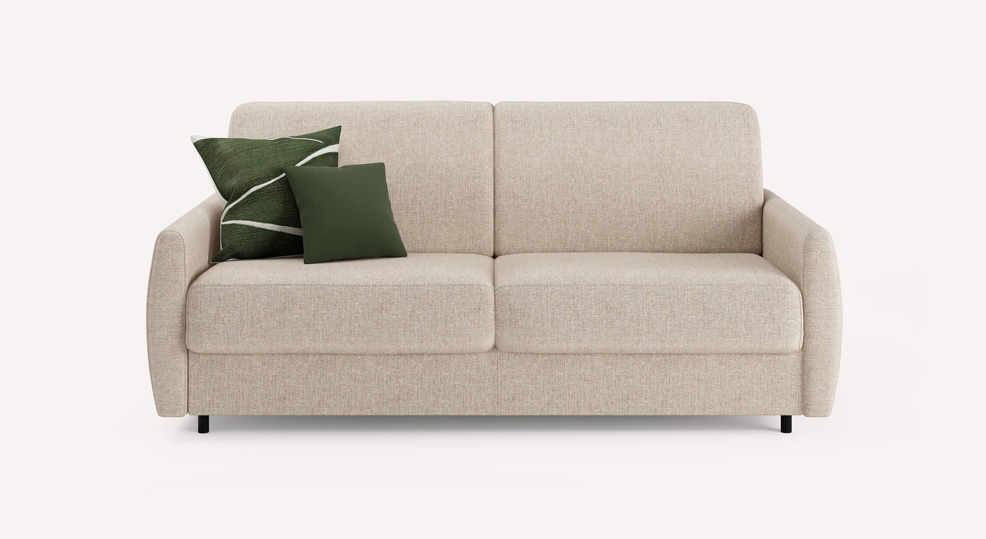 Le Canapé Convertible Alix dispose d'une assise mi-ferme qui vous garantit un confort maximal pour des moments de détente. Et pour des nuits reposantes, il embarque un matelas en mousse ultra confortable. Il est disponible en 2 autres accoudoirs commandables sur notre site internet ou en magasin.