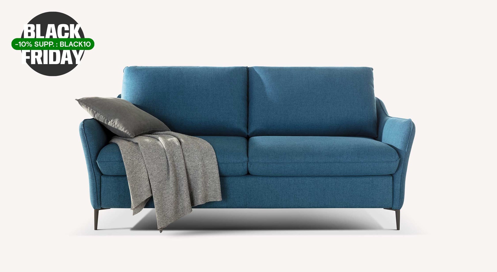 Vous apprécierez le confort exceptionnel du matelas quotidien offert par votre canapé. Le couchage du canapé lit BOGART repose sur un véritable sommier à larges lattes en bois de hêtre pour un confort de nuit excellent à toute épreuve et une qualité et un accueil qui n'ont rien à envier à un vrai lit ! Son assise confortable le jour et son couchage accueillant la nuit font de ce modèle un canapé lit cosy et fonctionnel.