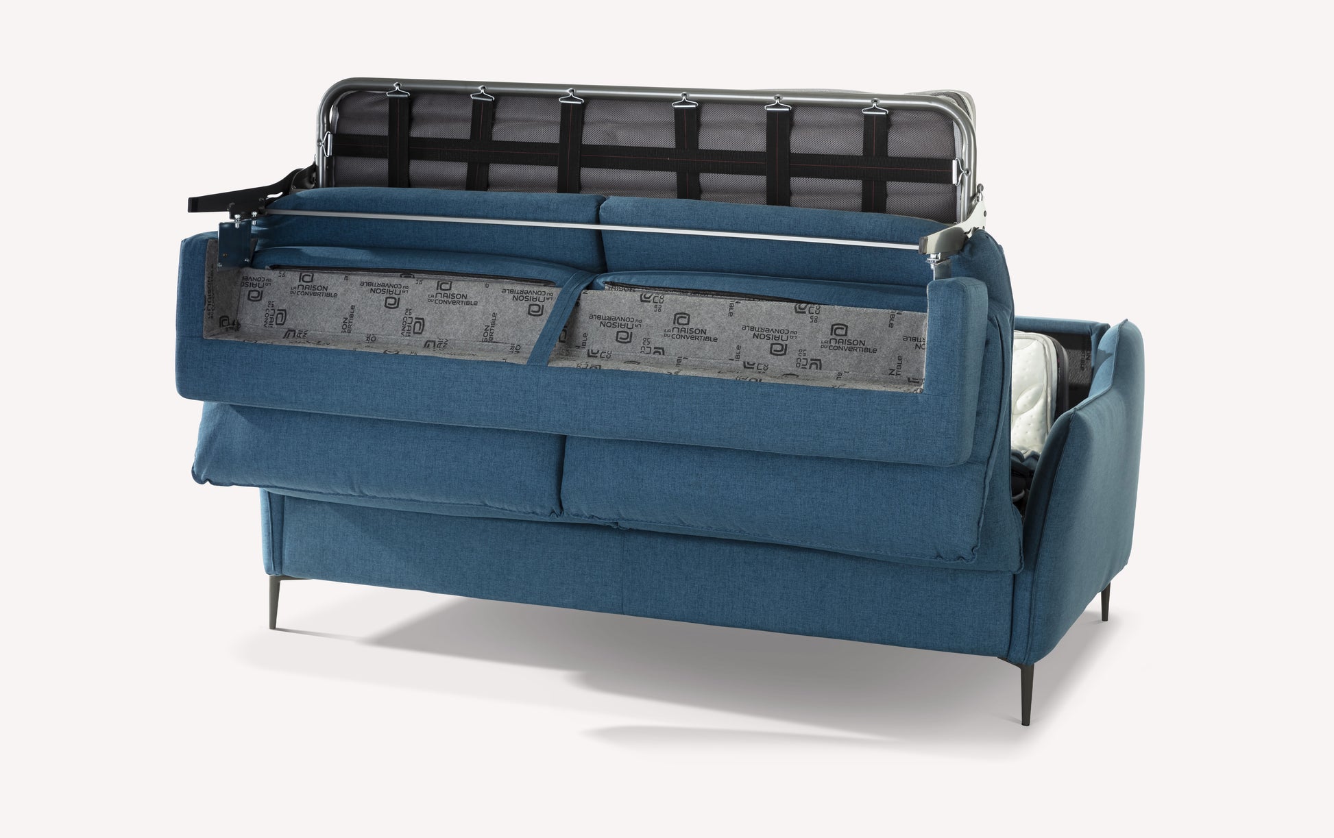 Le Bogart est équipé d’un mécanisme d’ouverture nommé Rapido, permettant de convertir le canapé en lit sans retirer les coussins, et en un simple mouvement. La manipulation est simple, rapide et intuitive, idéale pour une utilisation quotidienne !