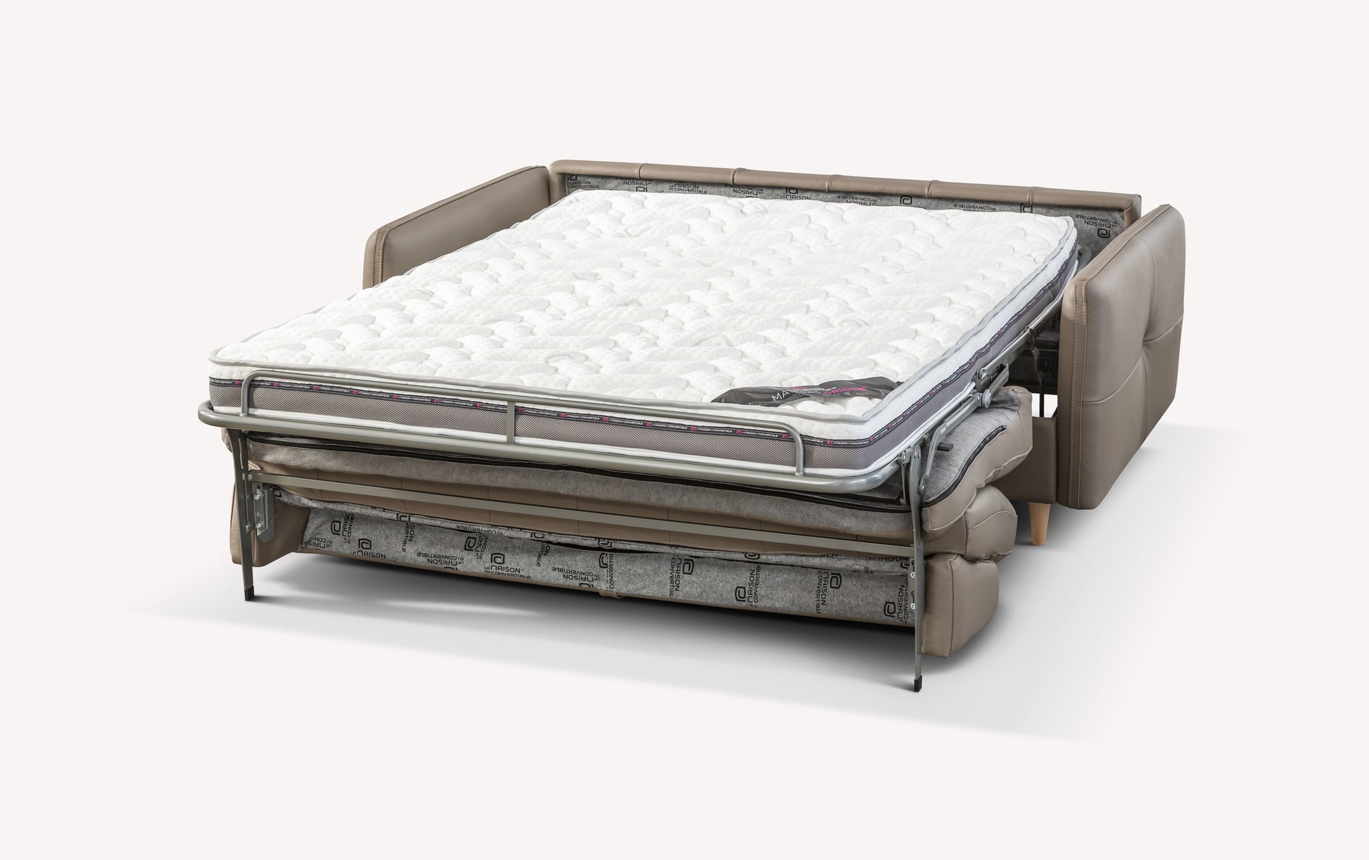 Confort de nuit : 100% lit, grâce à son sommier double lattes et son matelas grand confort, nous avons créé le SOHO cuir pour accueillir un couchage de tous les jours.