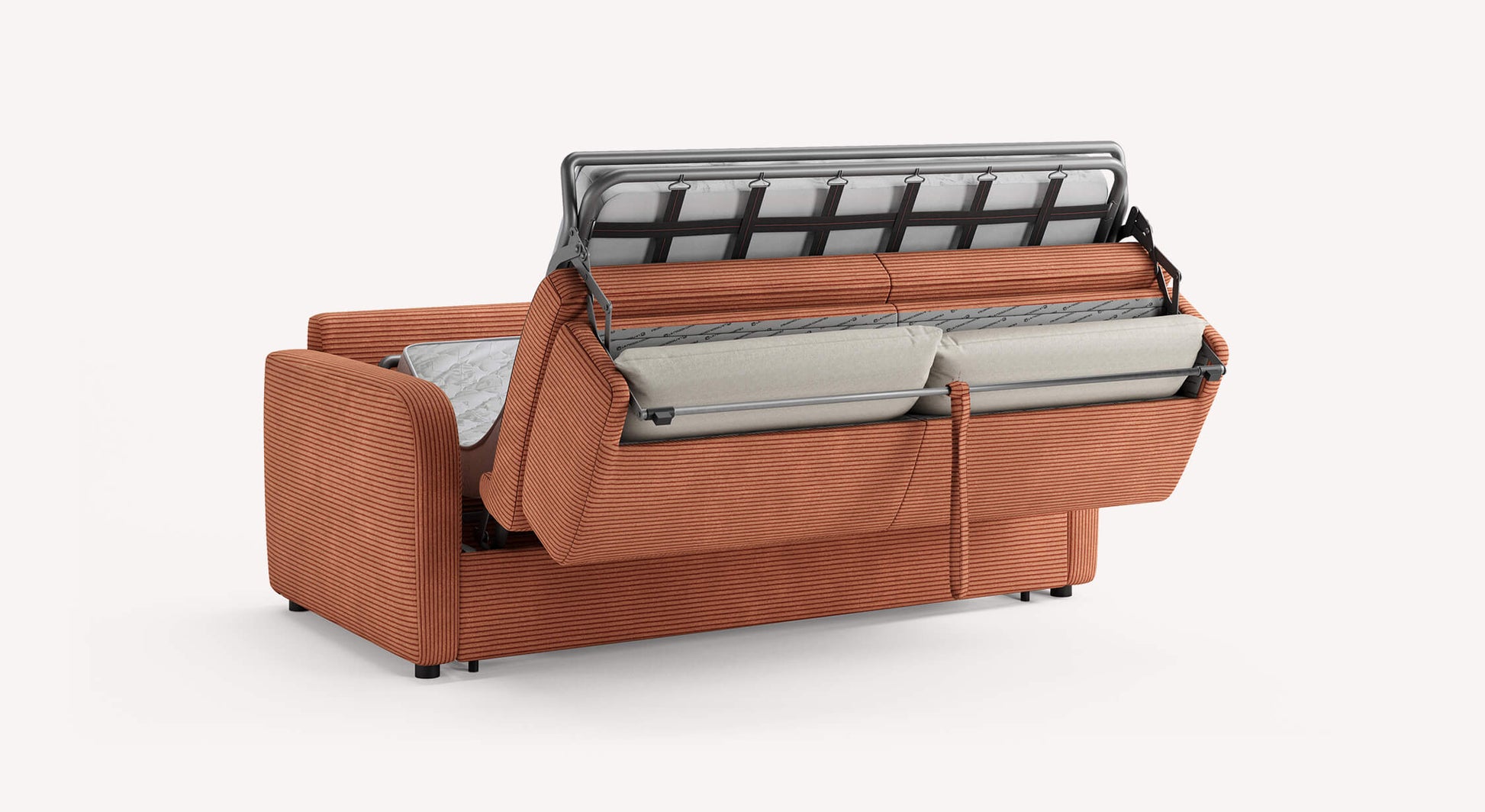 Le système de mécanique Rapido permet de passer du mode assise au couchage en quelques secondes seulement, sans avoir besoin de retirer les coussins. Une solution pratique et fluide au quotidien.