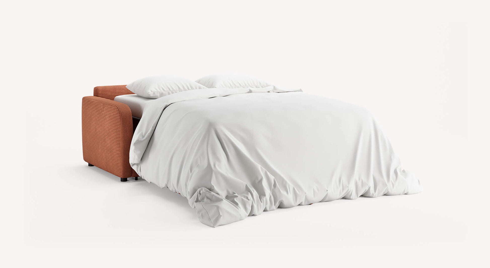 Une fois ouvert, le canapé-lit CLINT en velours côtelé mesure environ 185 cm de long, 210 cm de profondeur et 87 cm de hauteur. Son format compact est idéal pour les petits espaces.