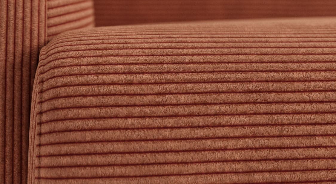 Découvrez le modèle CLINT, un canapé élégant au design moderne et compact en velours côtelé pour une touche déco raffinée. Ses formes arrondies et sa petite taille en font un modèle parfait pour un petit intérieur contemporain, offrant à la fois style et confort.