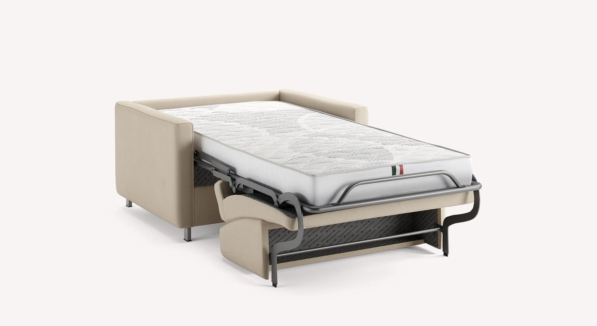 Le fauteuil convertible Jimmy se dévoile à vous dans toute sa beauté. Son allure droite et ses coupes fines font de lui un véritable meuble design. Il apporte du style dans votre déco et y installe un air contemporain.