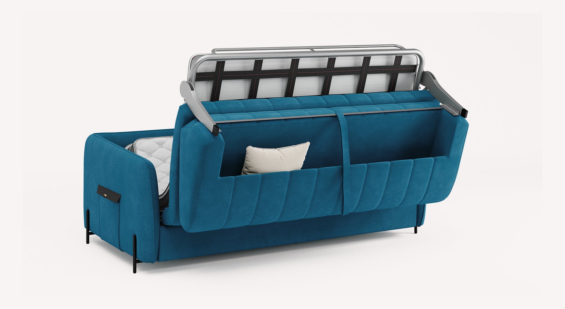 Le canapé convertible Horus est doté d'une assise en mousse moelleuse et confortable pour des moments de détente le jour. La nuit tombée, après l'avoir déplié, il devient un lit véritable doté d'un matelas confortable de 16 cm d'épaisseur pour vous assurer des nuits reposantes.