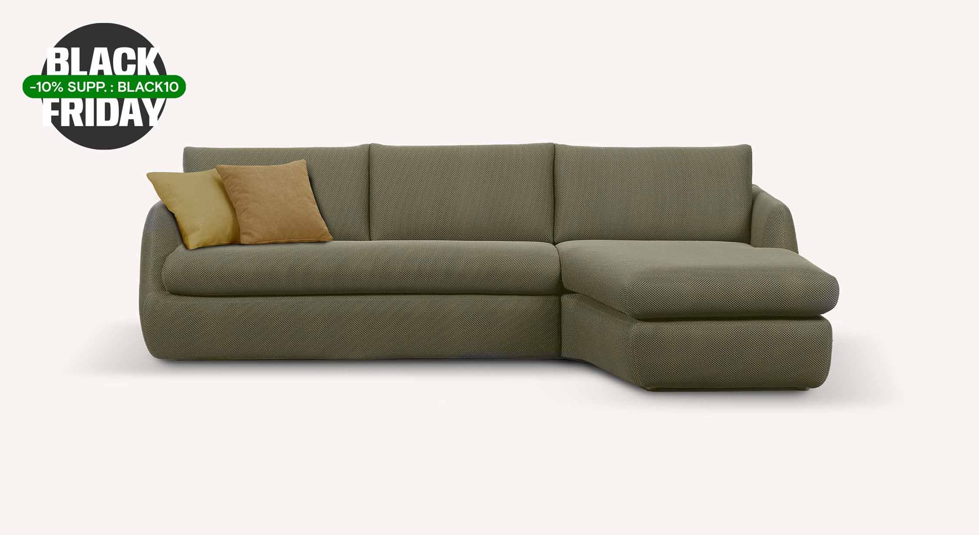 Découvrez le canapé convertible d’angle LUZ dans toute sa splendeur. Son design moderne et épuré, sublimé par des lignes arrondies et un tissu 3D innovant, en fait une pièce maîtresse de votre intérieur.