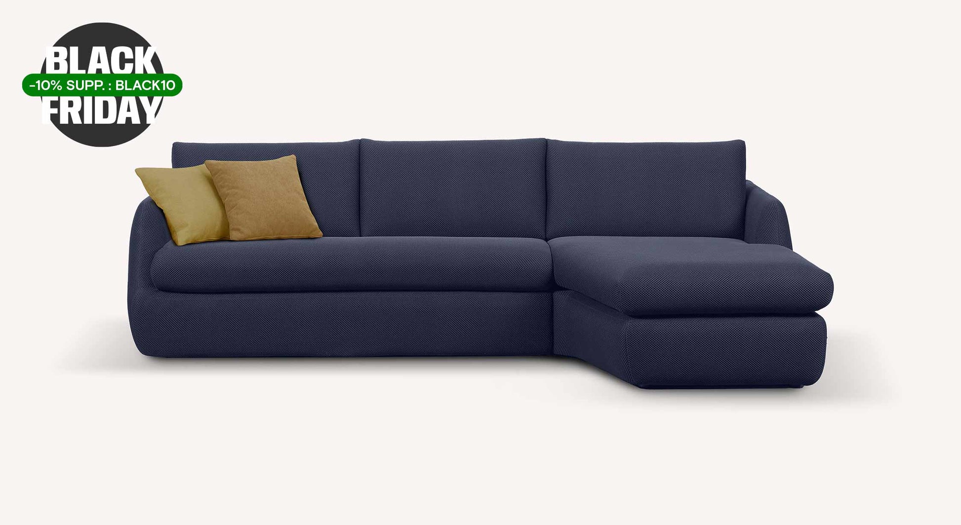Découvrez le canapé convertible d’angle LUZ dans toute sa splendeur. Son design moderne et épuré, sublimé par des lignes arrondies et un tissu 3D innovant, en fait une pièce maîtresse de votre intérieur.
