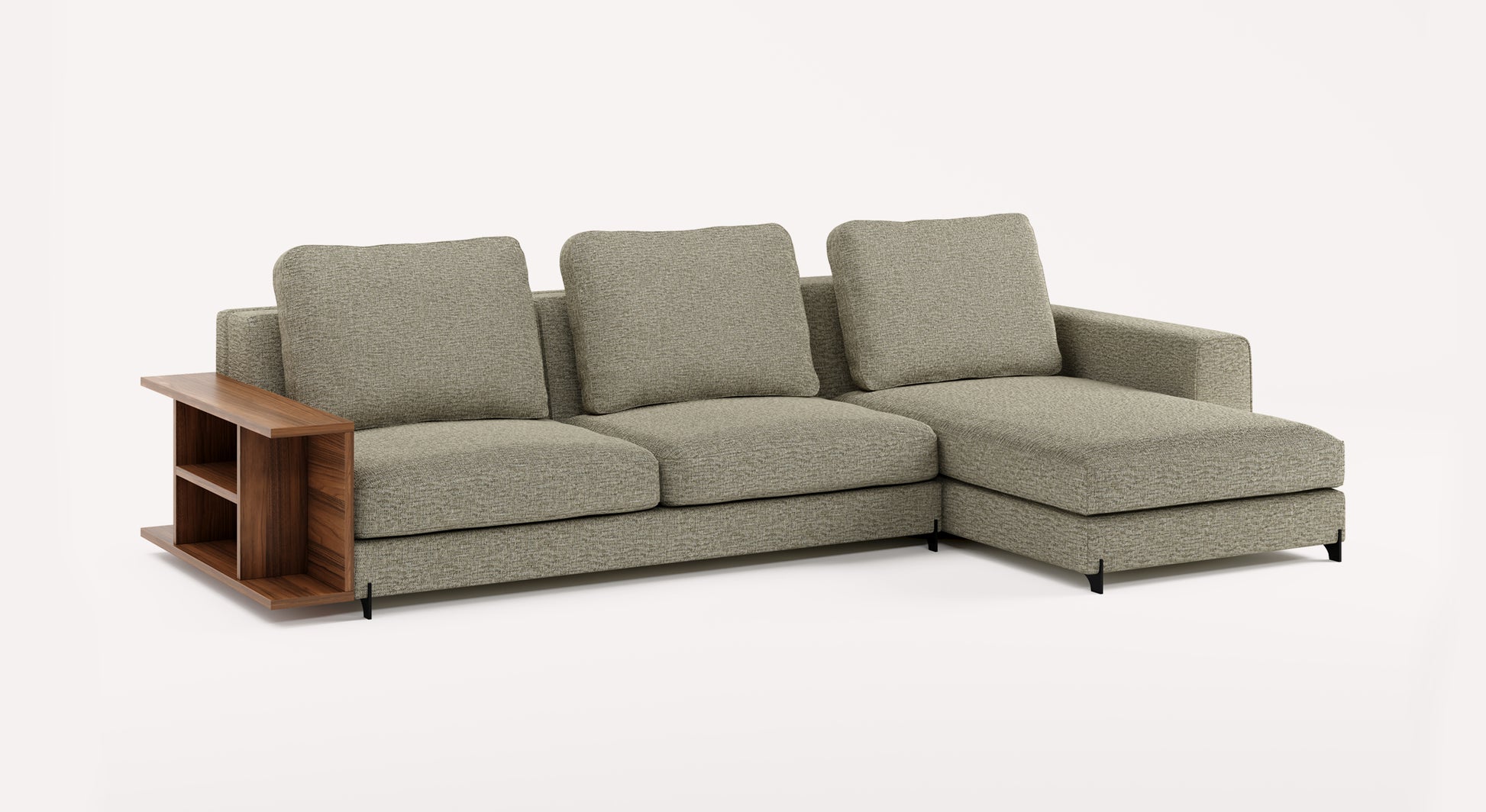 Le NELLY est le premier canapé modulable & convertible. Fonctionnel et élégant, sa silhouette minimaliste répond aux exigences de design et de confort. Ici, plongez dans sa version avec chaise longue pour les amateurs de plateau TV. Inédit : son accoudoir bibliothèque vous offre une touche d'originalité et un rangement supplémentaire (en plus de son coffre intégré). A composer et moduler à l'infini autour de multiples modules !