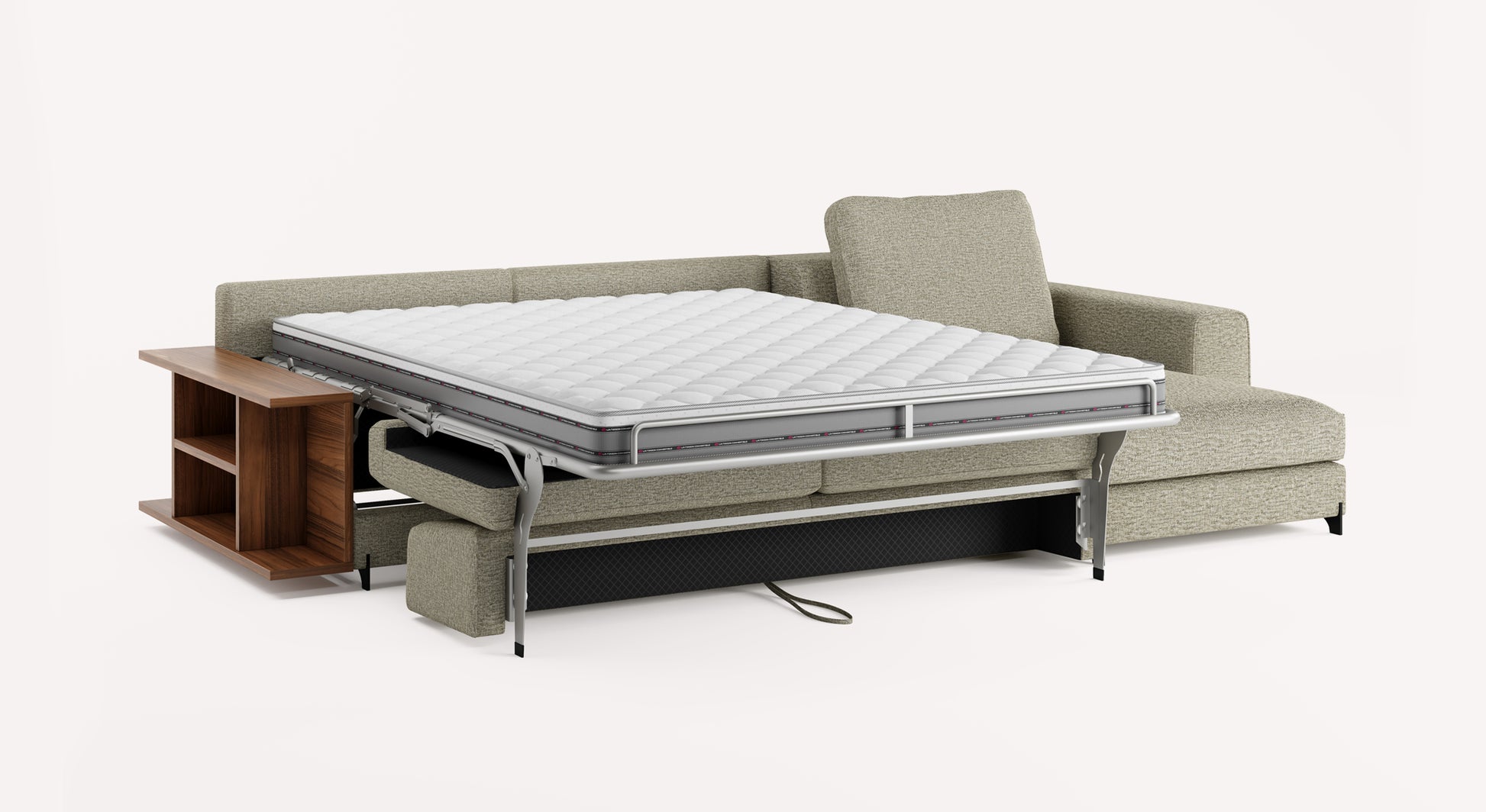 En quelques secondes, grâce au système rapido, il se transforme en un lit véritable composé d'un matelas de 13 cm d'épaisseur et d'un sommier à lattes ou à grilles selon vos préférences. Pouvant faire à la fois office de canapé confortable et de lit, il est le canapé multi-usage idéal. Nos conseillers en magasin seront ravis de vous présenter toutes les configurations possibles ainsi que tous les matelas qui correspondront le mieux à votre confort.