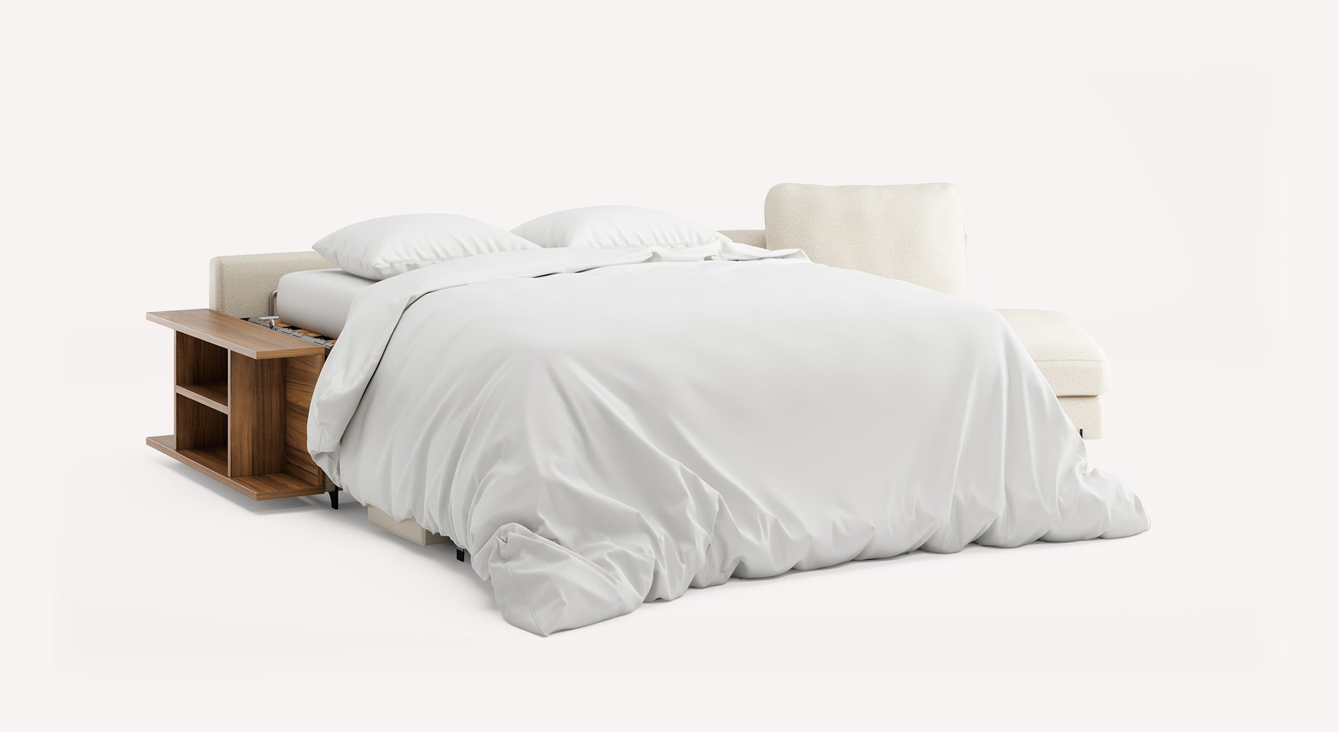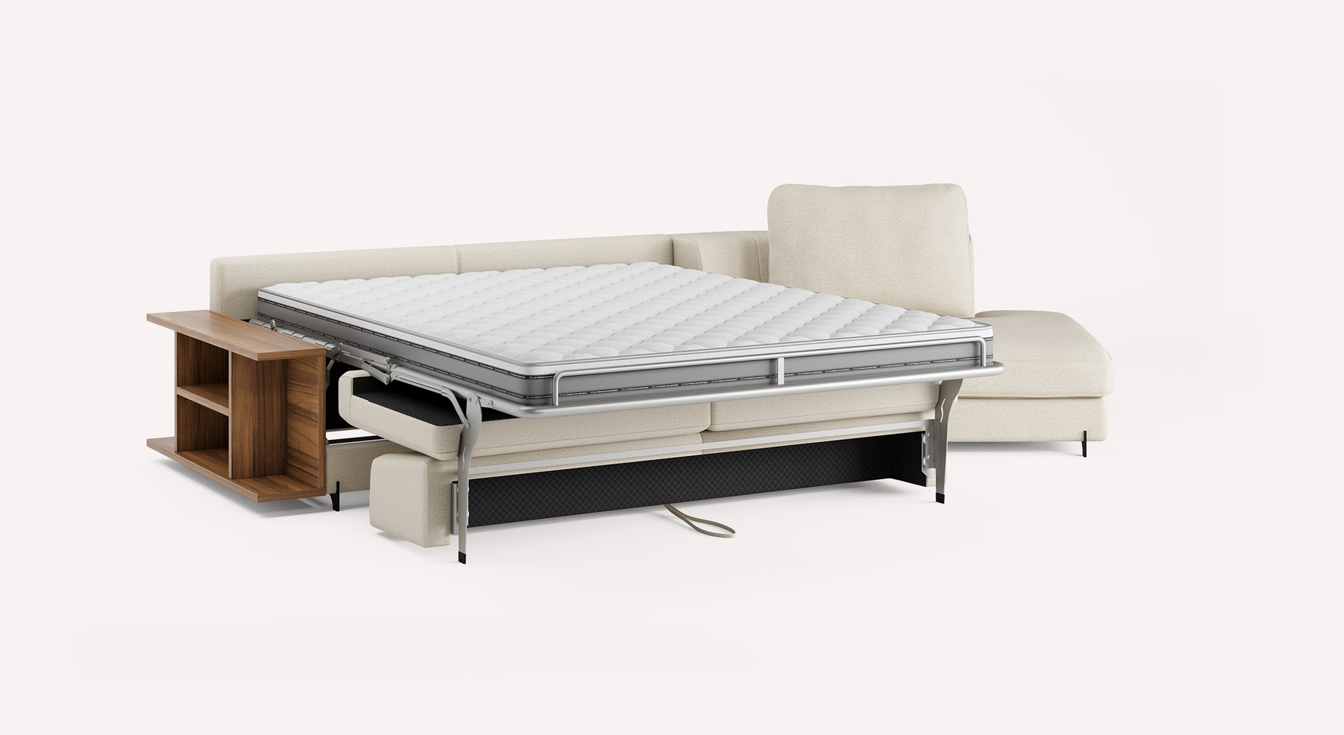 En quelques secondes, grâce au système rapido, il se transforme en un lit véritable composé d'un matelas de 13 cm d'épaisseur et d'un sommier à lattes ou à grilles selon vos préférences. Pouvant faire à la fois office de canapé confortable et de lit, il est le canapé multi-usage idéal. Nos conseillers en magasin seront ravis de vous présenter toutes les configurations possibles ainsi que tous les matelas qui correspondront le mieux à votre confort.