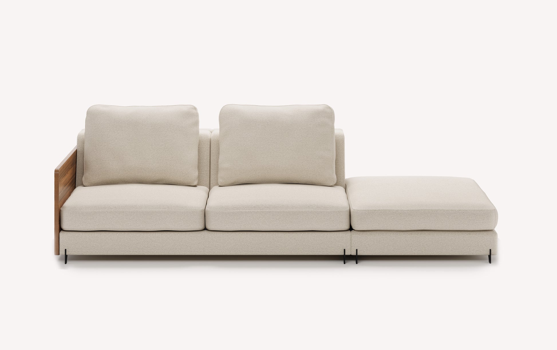 Admirez le NELLY modulable avec pouf coffre, canapé modulable de La Maison Convertible. Avec une allure de finesse, le NELLY modulable avec pouf coffre sait s'imposer dans votre décor. Interchangeable dans une multitude de combinaisons, le Nelly Modulable avec pouf coffre est totalement personnalisable dans +500 coloris. Son accoudoir ultra fin en bois noyer existe aussi en chêne clair, mélaminé grege et mélaminé noir.