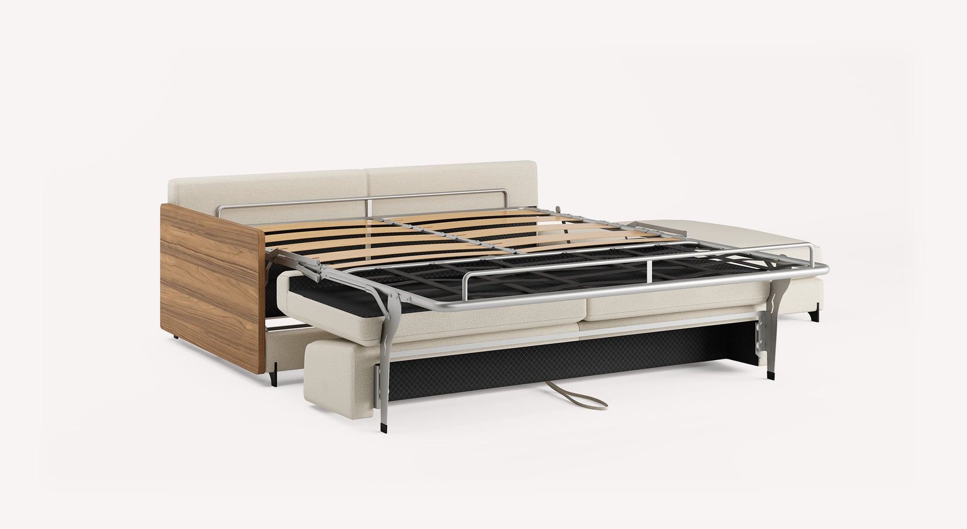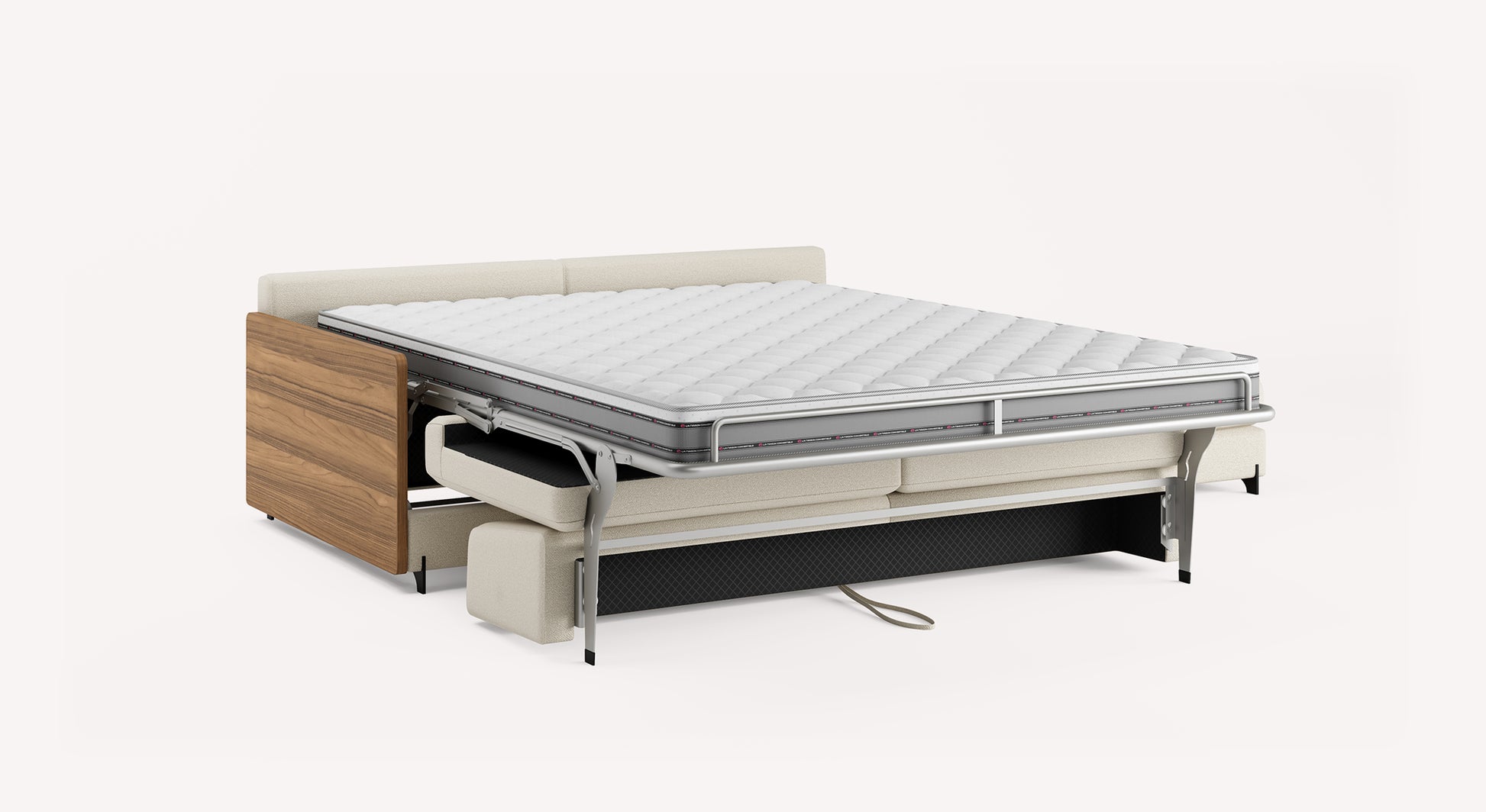 En quelques secondes, grâce au système rapido, il se transforme en un lit véritable composé d'un matelas de 13 cm d'épaisseur et d'un sommier à lattes ou à grilles selon vos préférences. Pouvant faire à la fois office de canapé confortable et de lit, il est le canapé multi-usage idéal. Avec sa structure en bois massif de sapin, Il est doté d'une assise semi ferme en mousse polyuréthane super confortable. Nos conseillers en magasin seront ravis de vous présenter toutes les configurations possibles ainsi que tous les matelas qui correspondront le mieux à votre confort.