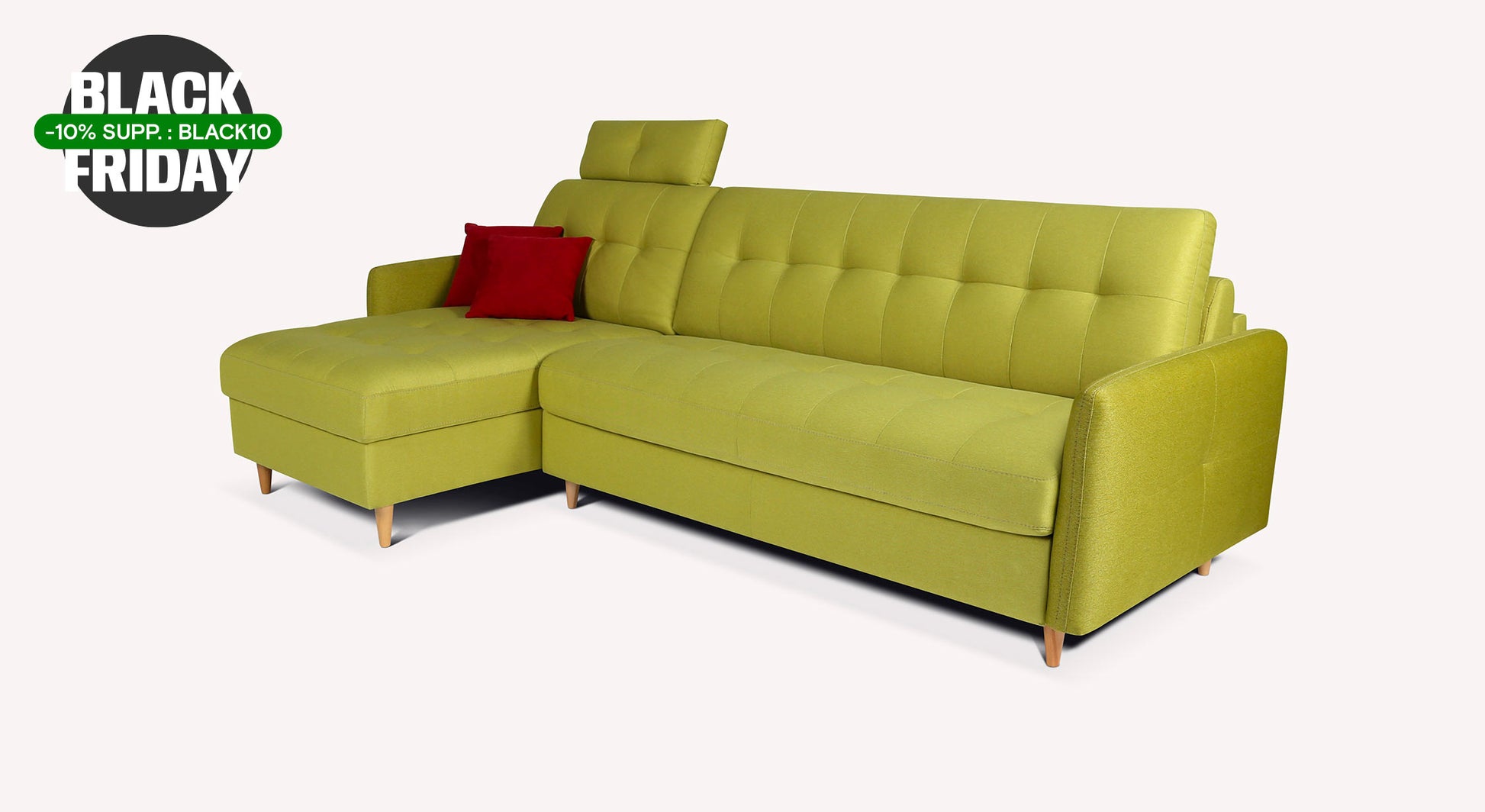 Le canapé d'angle convertible SOHO, le canapé lit vintage ! 100% design et 100% confort, il s'associera aux intérieurs les plus tendances. Profitez de son coffre de rangement !