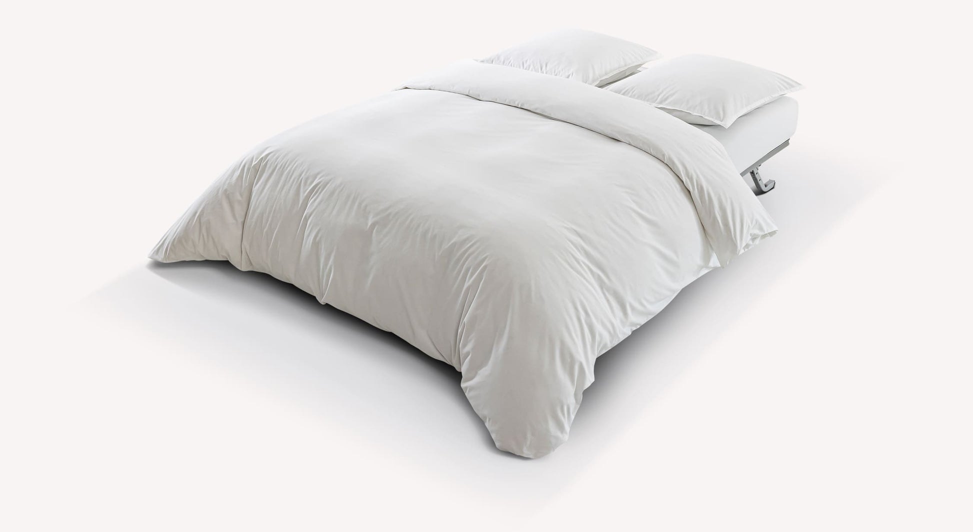 Avec sa structure de bois en sapin massif, la banquette BZ TORONTO séduit par son allure simple et moderne, qui s’intègre facilement dans tous les styles d’intérieur. Son revêtement astucieux fait aussi office de couette, tandis que la housse se retire en un clin d’œil pour un entretien facile. Idéal pour un couchage régulier, TORONTO se déplace sans effort grâce à son système Roller Up monté sur roulettes, et est équipée d'un sommier à 8 lattes en bouleau pour plus de confort.